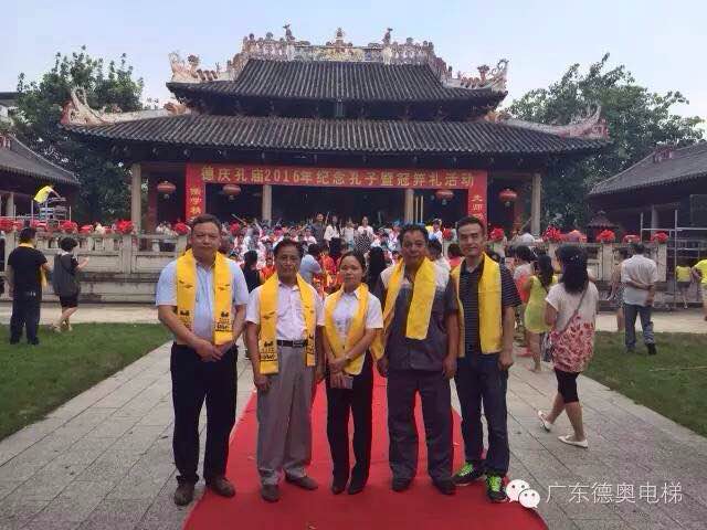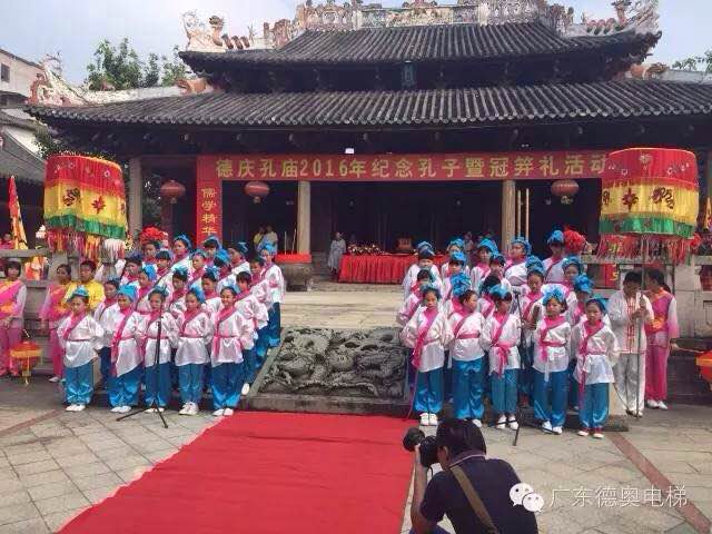上午9:40時開始,德慶孔廟鼓樂齊鳴,人潮湧動,一系列紀念孔子誕辰活動在這裏上演。廣東省鄉鎮企業協會遊漢铨會長帶領企業協會會員參與活動,德奧(ào)電梯科技(廣東)有限公司作爲廣東省鄉鎮企業協會副會長單位受邀參與活動,德慶縣内外文化、政界人士與當地群衆、嶺南孔氏宗親、各社團堂口代表、各地遊客數千人參與活動,共同紀念孔子,傳承國學,弘揚尊師重教。在典禮官的主持下,人們按傳統舉行祭孔典禮,獻花敬拜孔子、學生吟誦國學經典,並(bìng)開展“冠笄禮”活動,共同傳承國學精髓,弘揚古聖精神。